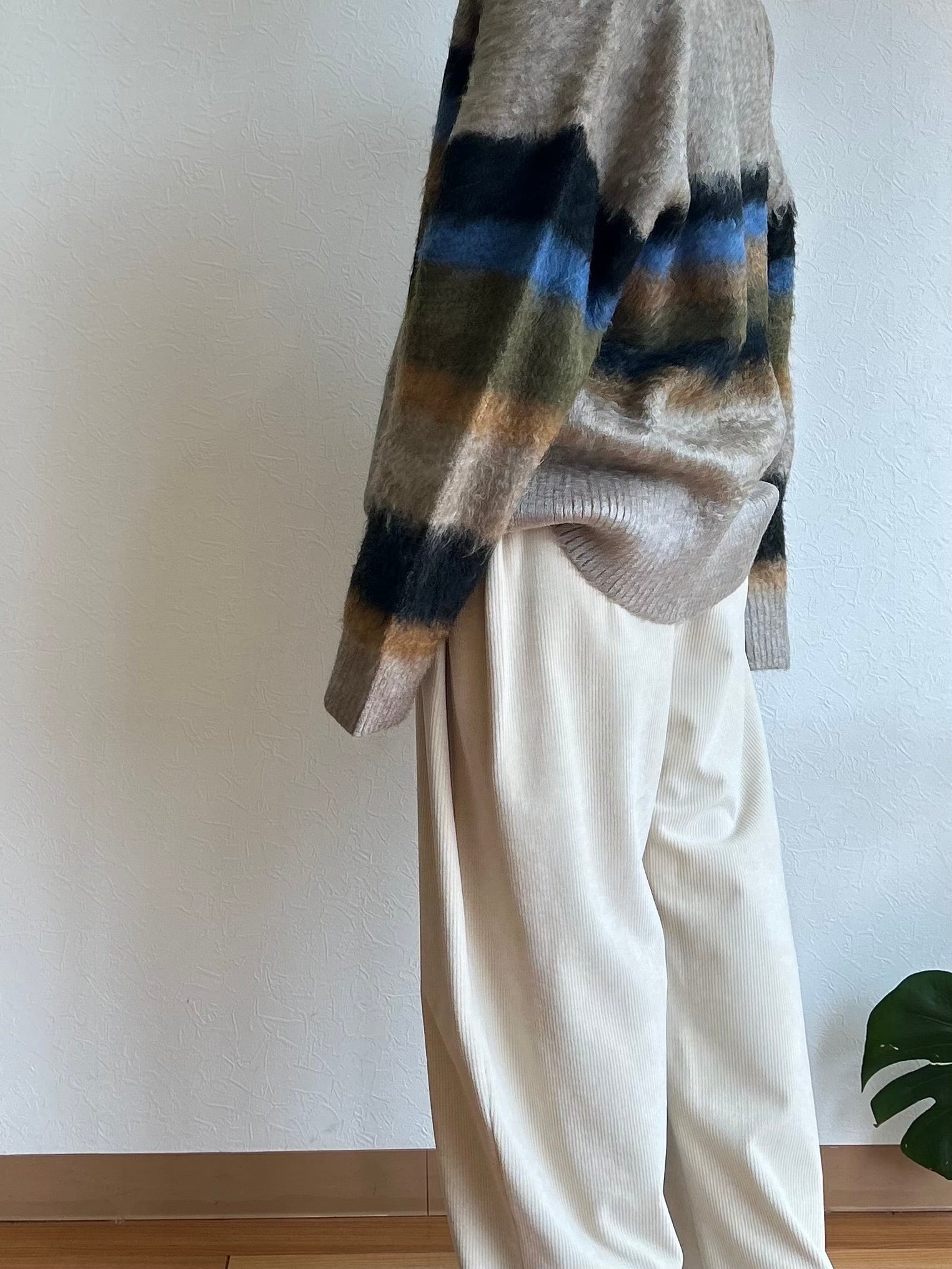 こなれた雰囲気の、インターシャ編みニット。ランダムラインと、起毛素材でニュアンスある柄に♩ 異なる糸色ごとに分けて編むため、大胆な柄を表現しても編地の裏側に余分な糸が通らず、また色の境目もしっかりわかるのが特徴です。 起毛していることで、柔らかい雰囲気も醸し出します。 目を引くカラーの組み合わせが、冬のお洒落ポイントに♩ サイズ :FREE 着丈 62cm 裄丈 78cm 身幅 54cm 素材:ポリエステル68% ナイロン23% 毛8% ポリウレタン1% 透け感:なし 伸縮性:あり 光沢感:なし 生地の厚さ:ふつう ※平置き採寸のため、若干の誤差が出る場合がございます。ご了承下さい。 ※着用モデルの身長163cm ○商品購入後の、お客様都合の返品交換はお断りしております。 ○配送業者:佐川急便 ○最短お届け日は余裕をもって設定しております。発送は可能な限り早く致しますので、予定より早く到着する可能性もございます。 ○日時指定は承っておりますが、運送会社の状況により稀にズレが生じる場合もございます。 ご理解いただけますと幸いです。