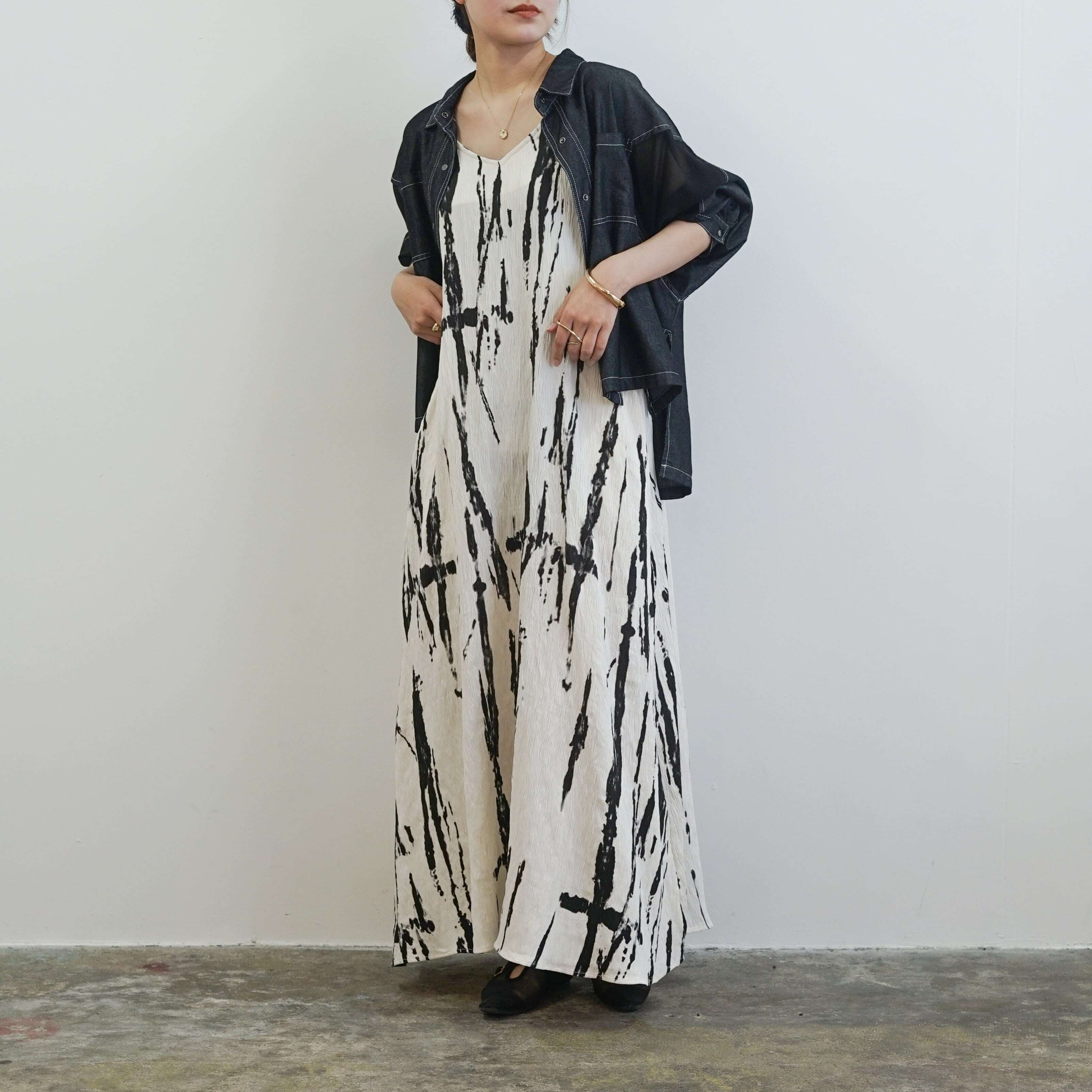 ペイント柄が洗練された印象を与えるキャミソールワンピース