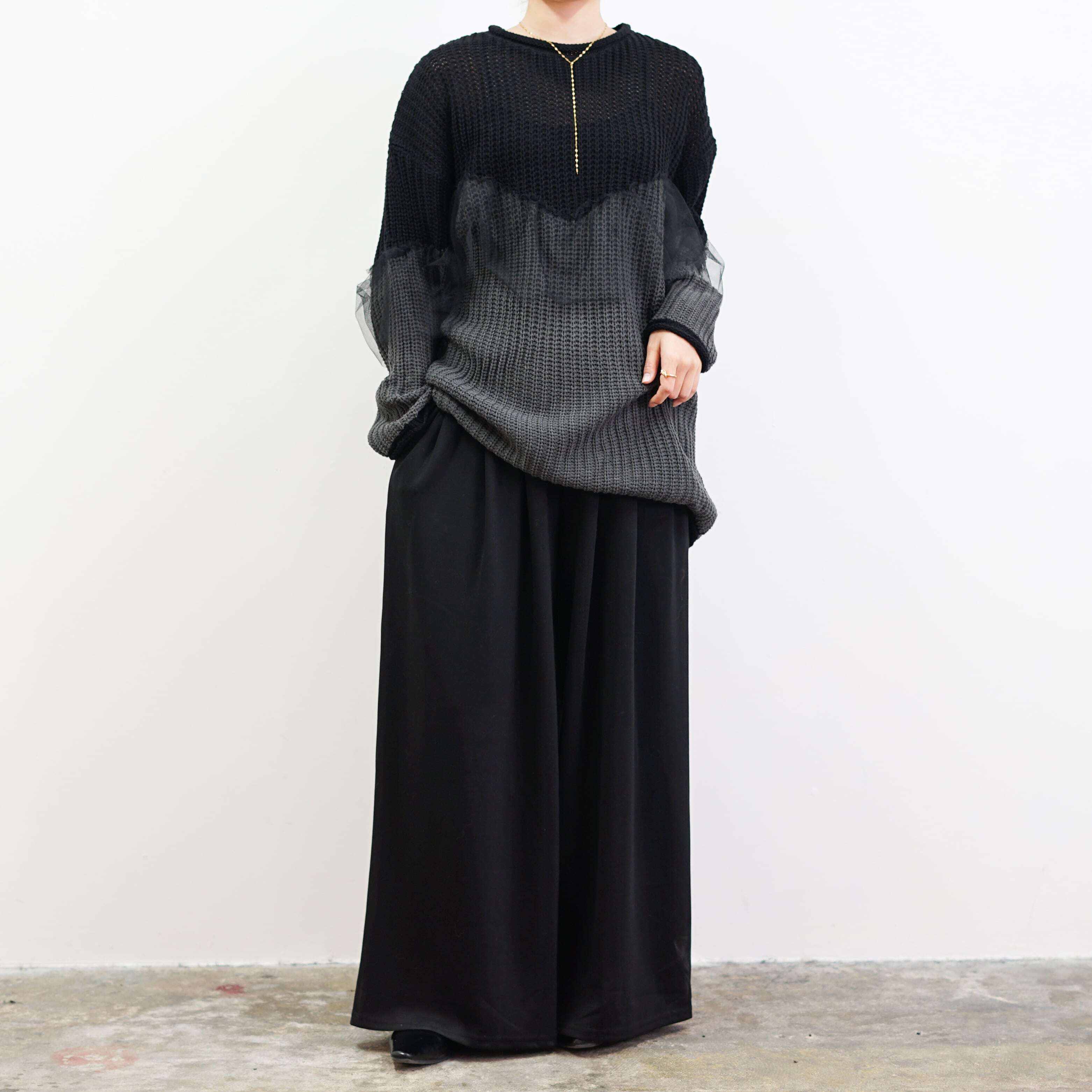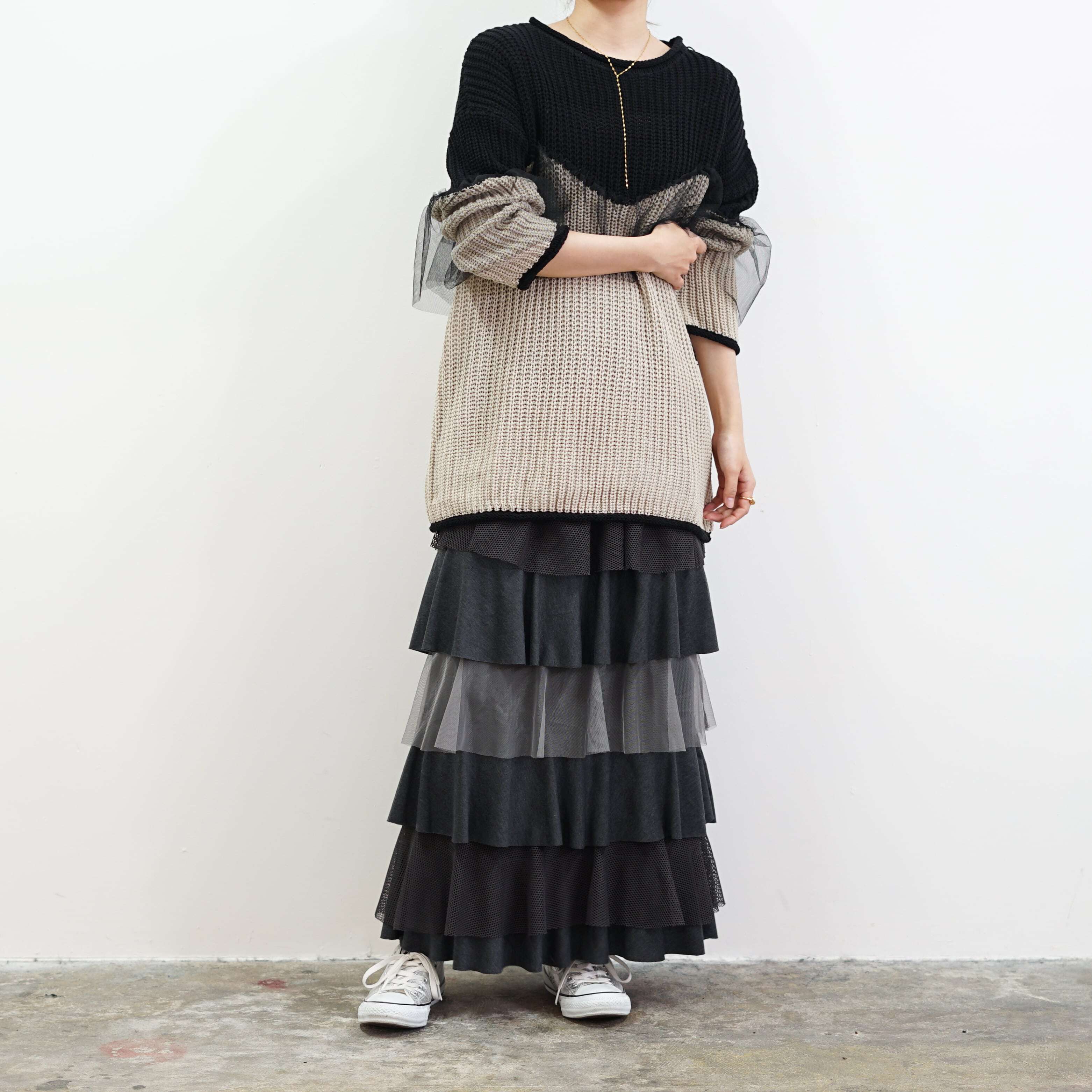 ふんわりチュールの異素材切替がポイントのバイカラーニット。