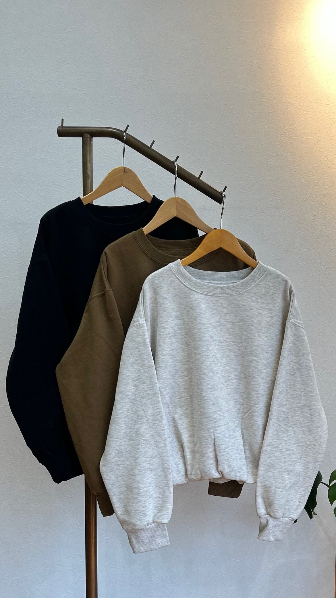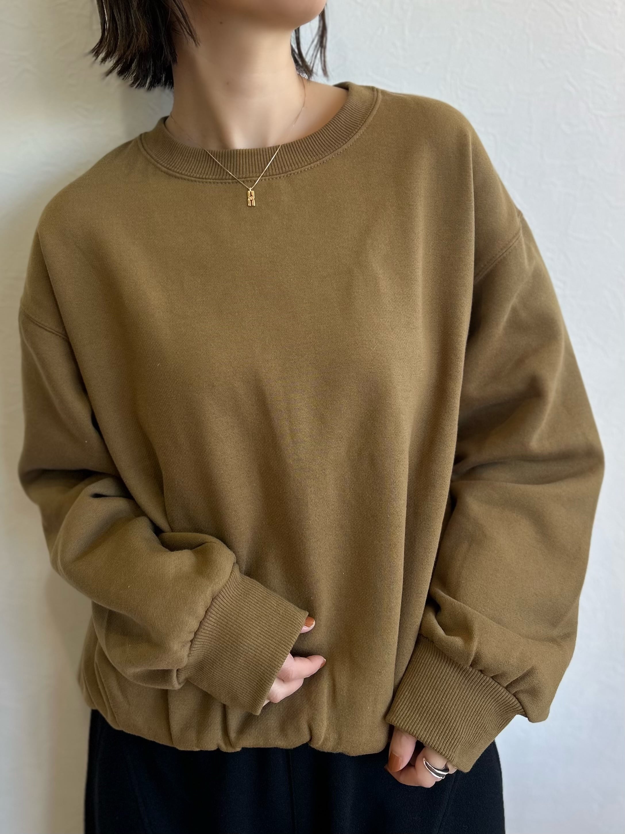 裾にタックとギャザーがほどこされた、立体的なシルエットのスウェットです。