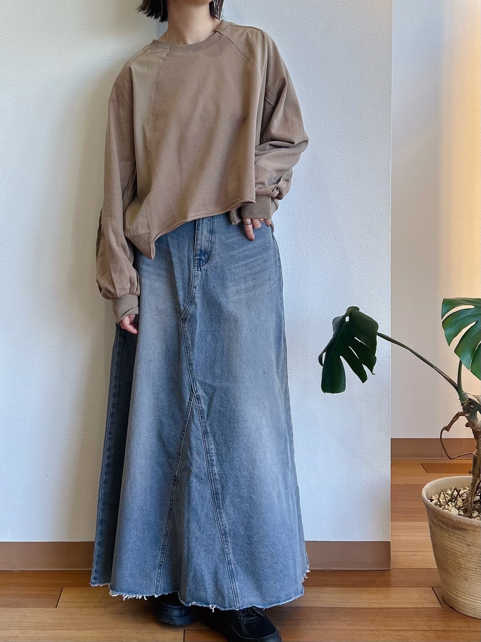 シンプルなフレアスカートはどんなトップスとも相性よく、コーディネートの幅が広がります♩