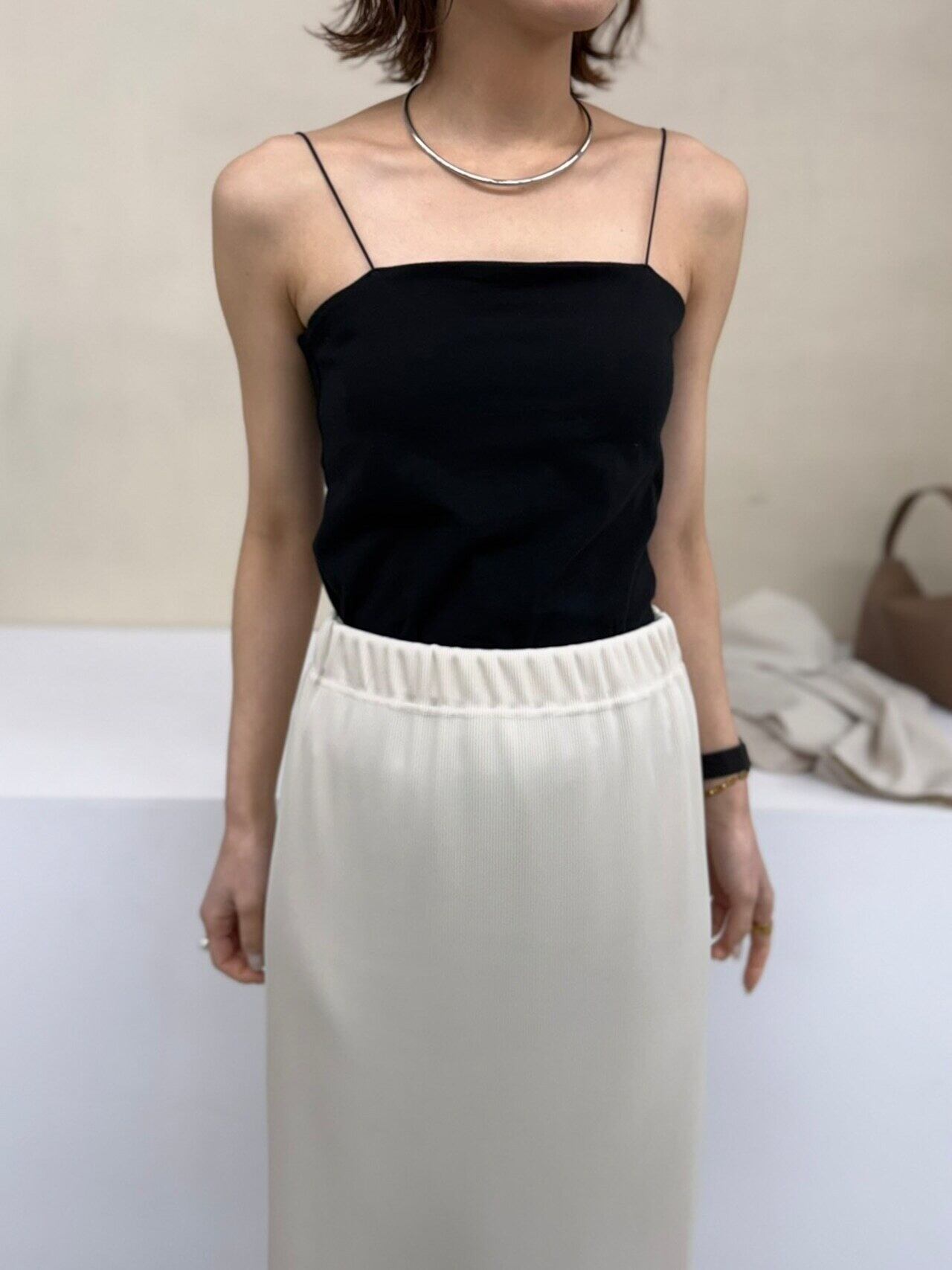 華奢見えする肩紐デザインで、インナー使いでも女性らしさをキープ。程よい厚みとキックバックの良い素材で、デイリーにストレスなく着用できます!