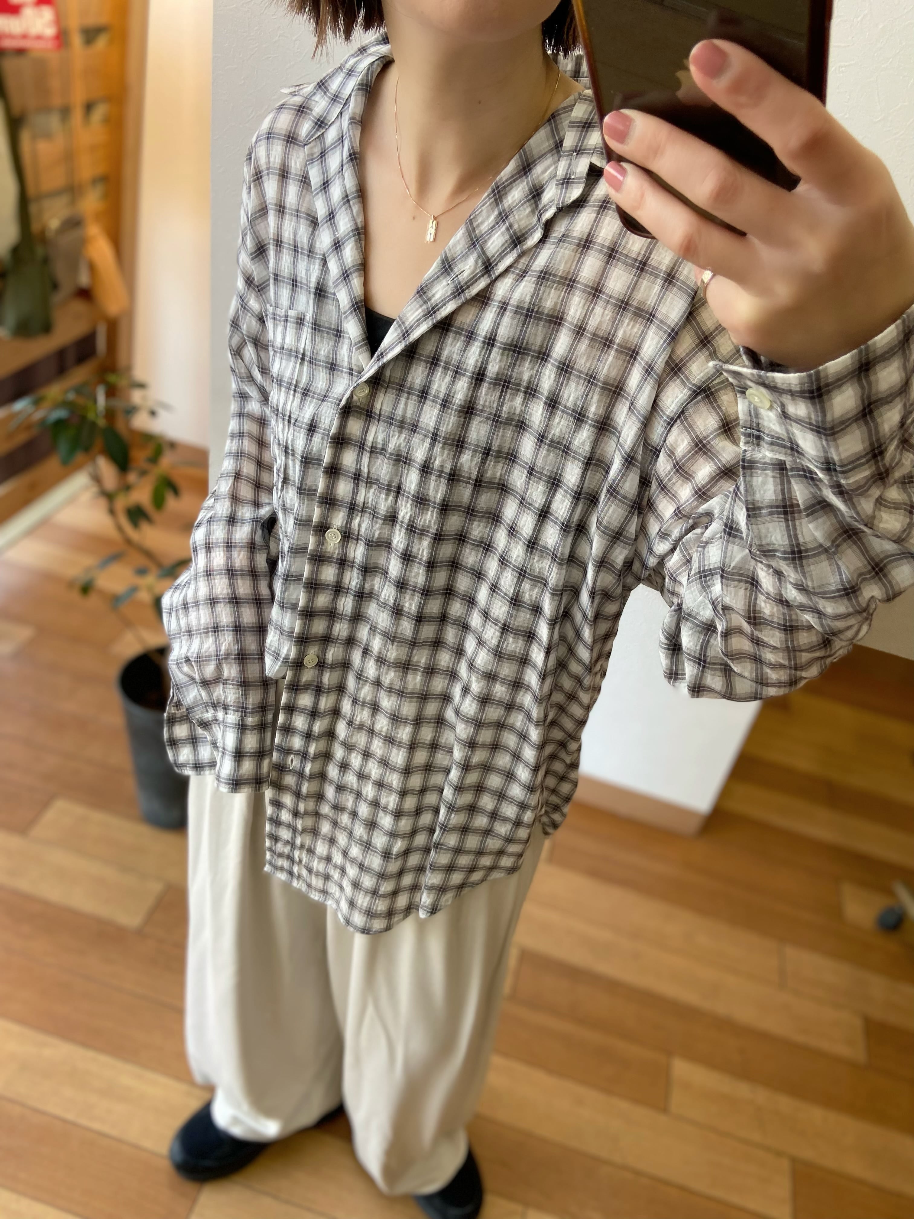 シャーリングチェックリラックスシャツ・cafune