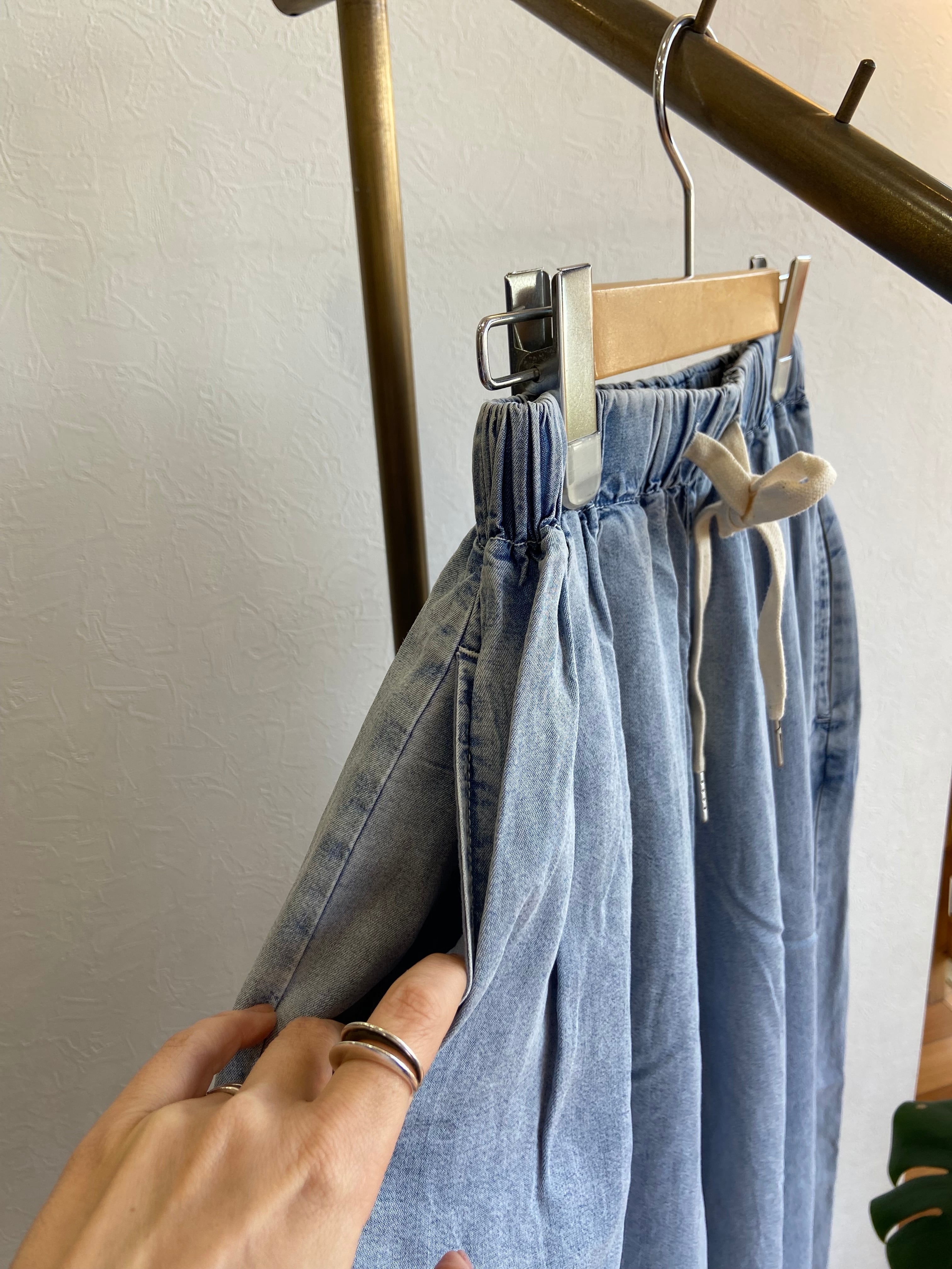 とろっとやわらかく、肌触り抜群デニムワイドパンツ。