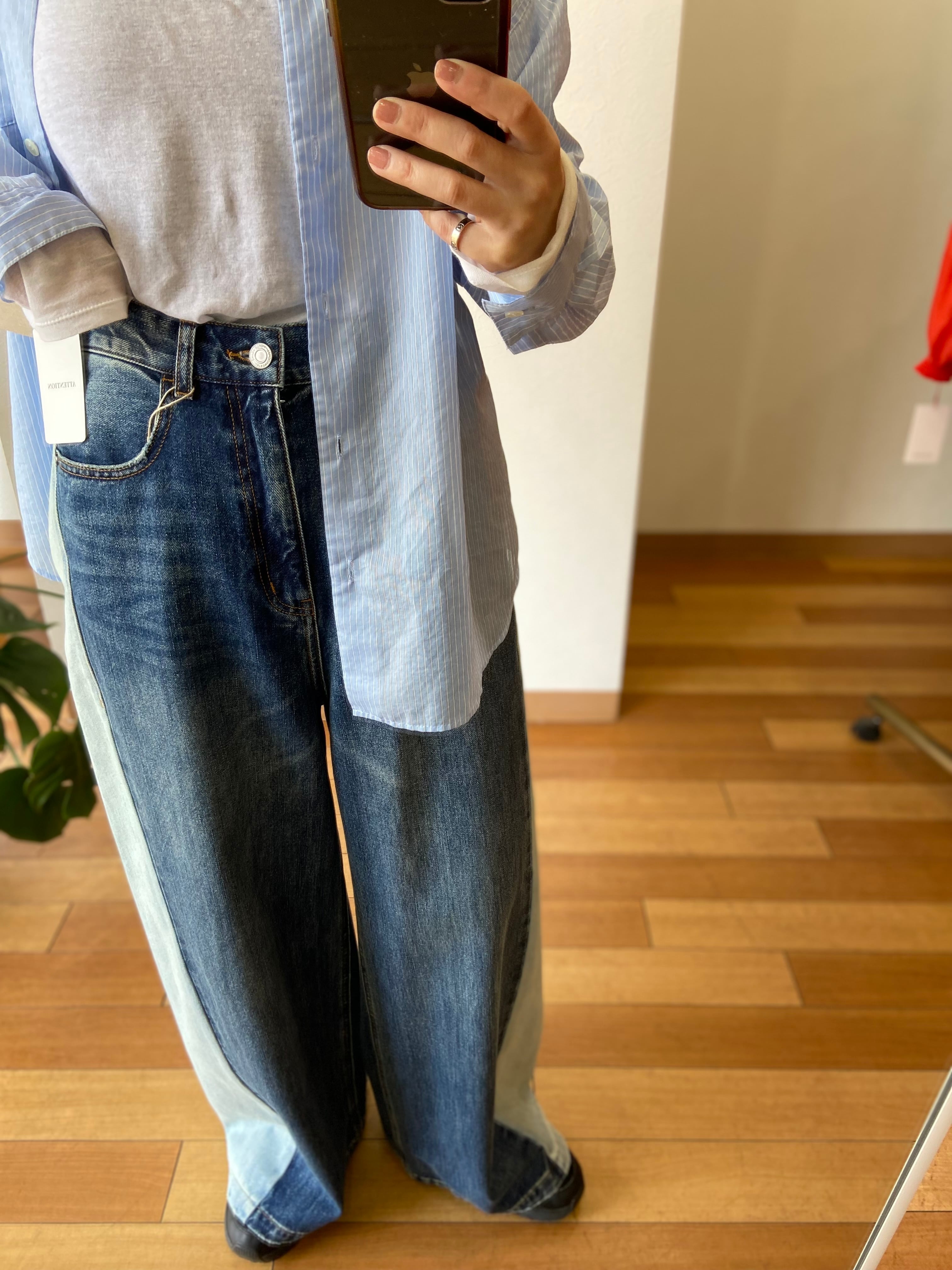 サイド切替ワイドデニムパンツ・cafune
