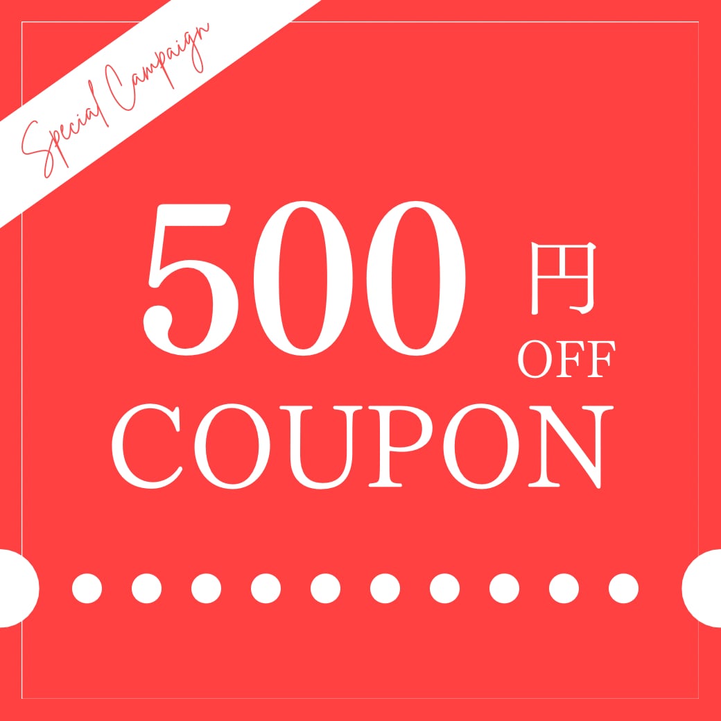 500pointから、次回のお買い物で使えるクーポンをプレゼント。商品ご購入の際に特典申請をお願いいたします。